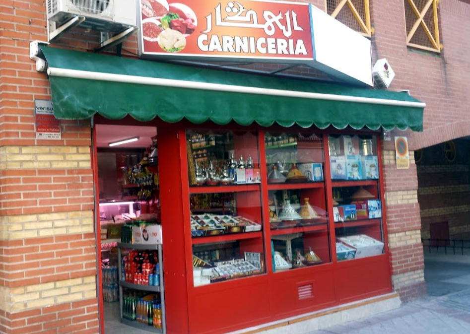 Carnicería cercana a la mezquita de la M30, en el barrio de la Concepción en Madrid.