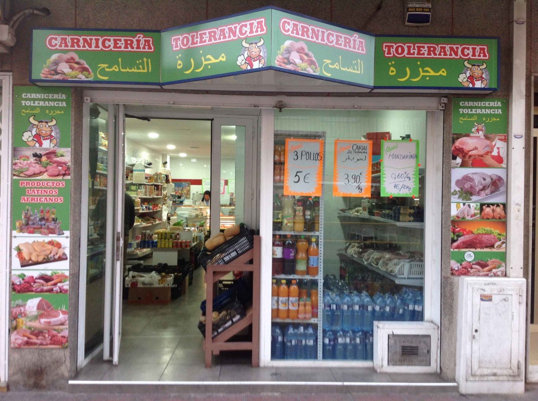 Carnicería halal Tolerancia Santiago el Mayor. Singular comercio donde podemos encontrar gran variedad en carnes de primerísima calidad Halal de ternera, cordero, pavo, pollo, filetes de ternera, entrecot de ternera, falda de ternera, productos africanos, como: pan, legumbres, especias, encurtidos, te, y también gran abanico de productos latinos como: bebidas, harina de maiz, maiz de tostar, verduras, frutas y mucho mas..