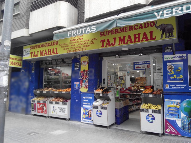 Supermercado indo-paquistaní en el barrio de Ayora en Valencia. Dispone de  frutería y carnicería halal.